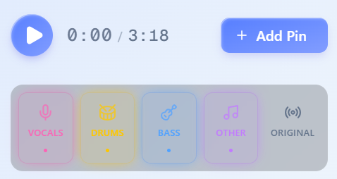 楽曲を解析し、パート毎にステムを生成。ボーカルやドラムをミュートして、練習用トラックとして活用できます。